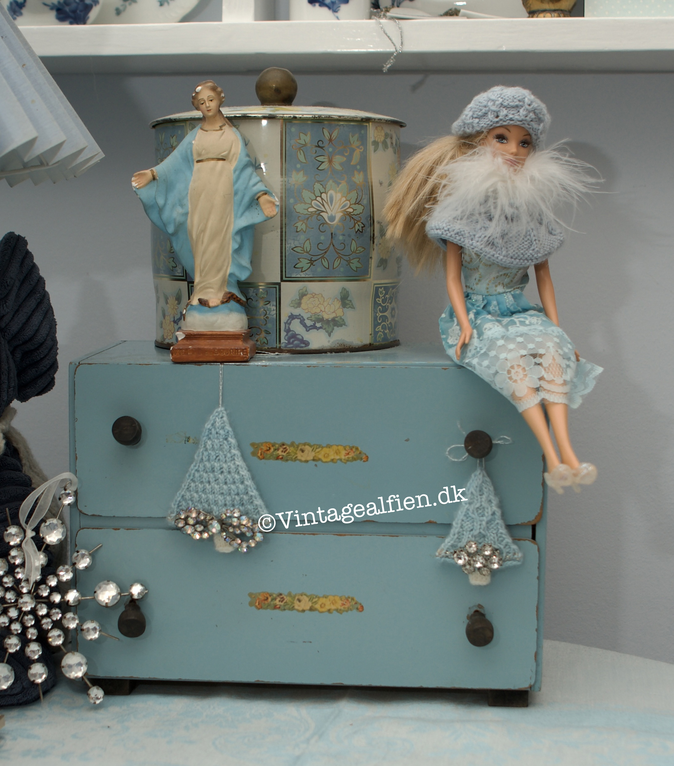 De-strikkede-juletraeer-julepyntet-dukkekommode
